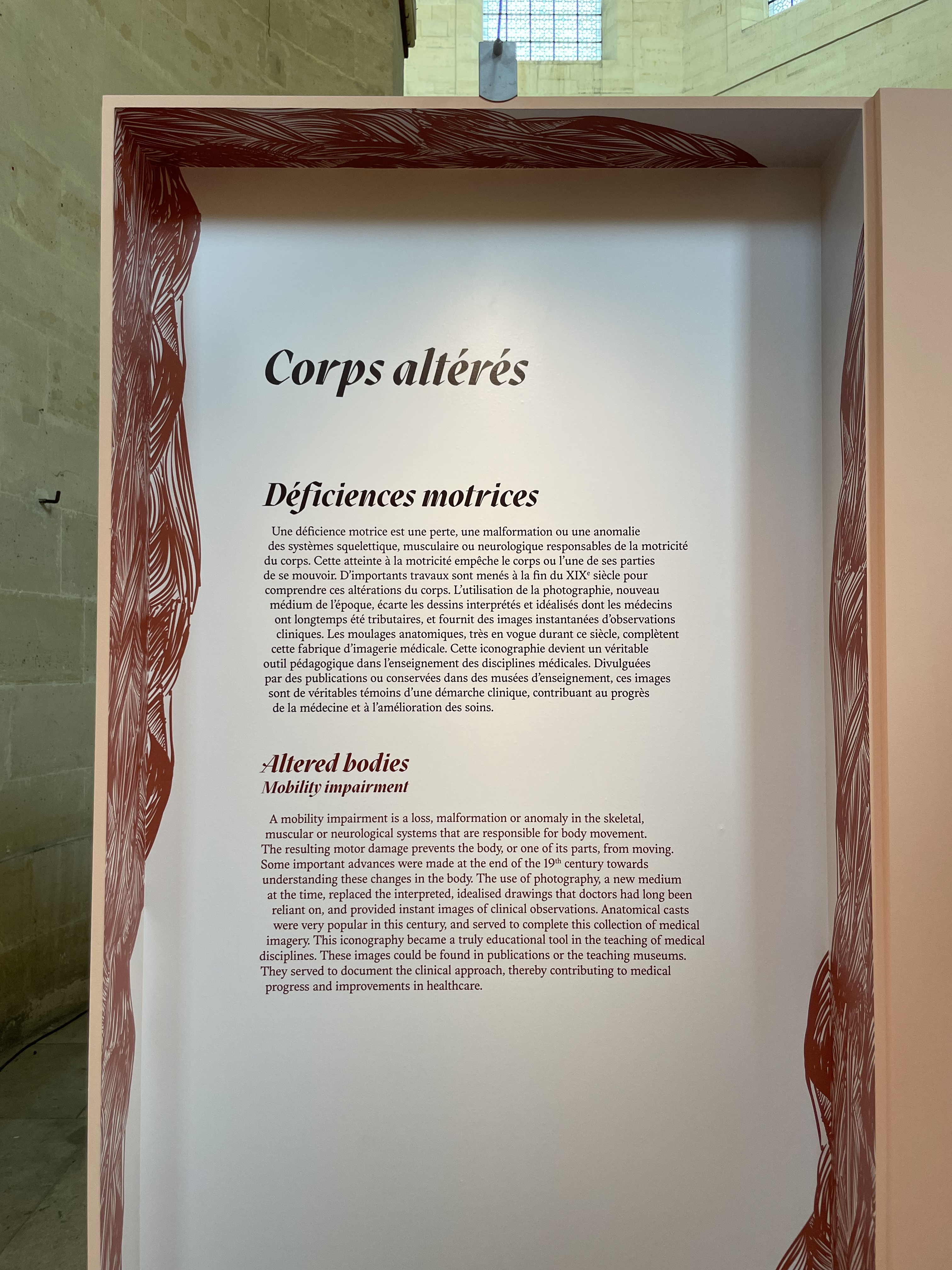 Creation of signage for the Corps Mouvementés exhibition at the Pitié Salpêtrière chapel
