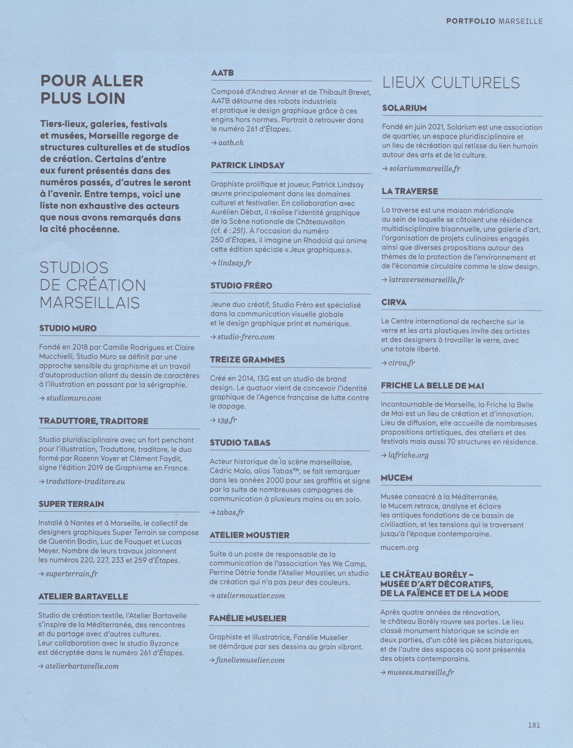 Claire est diplômée de l’École Nationale Supérieure des Arts Décoratifs de Paris. En 2018, elle co-fonde avec Camille Rodrigues le studio de design graphique Muro à Marseille.