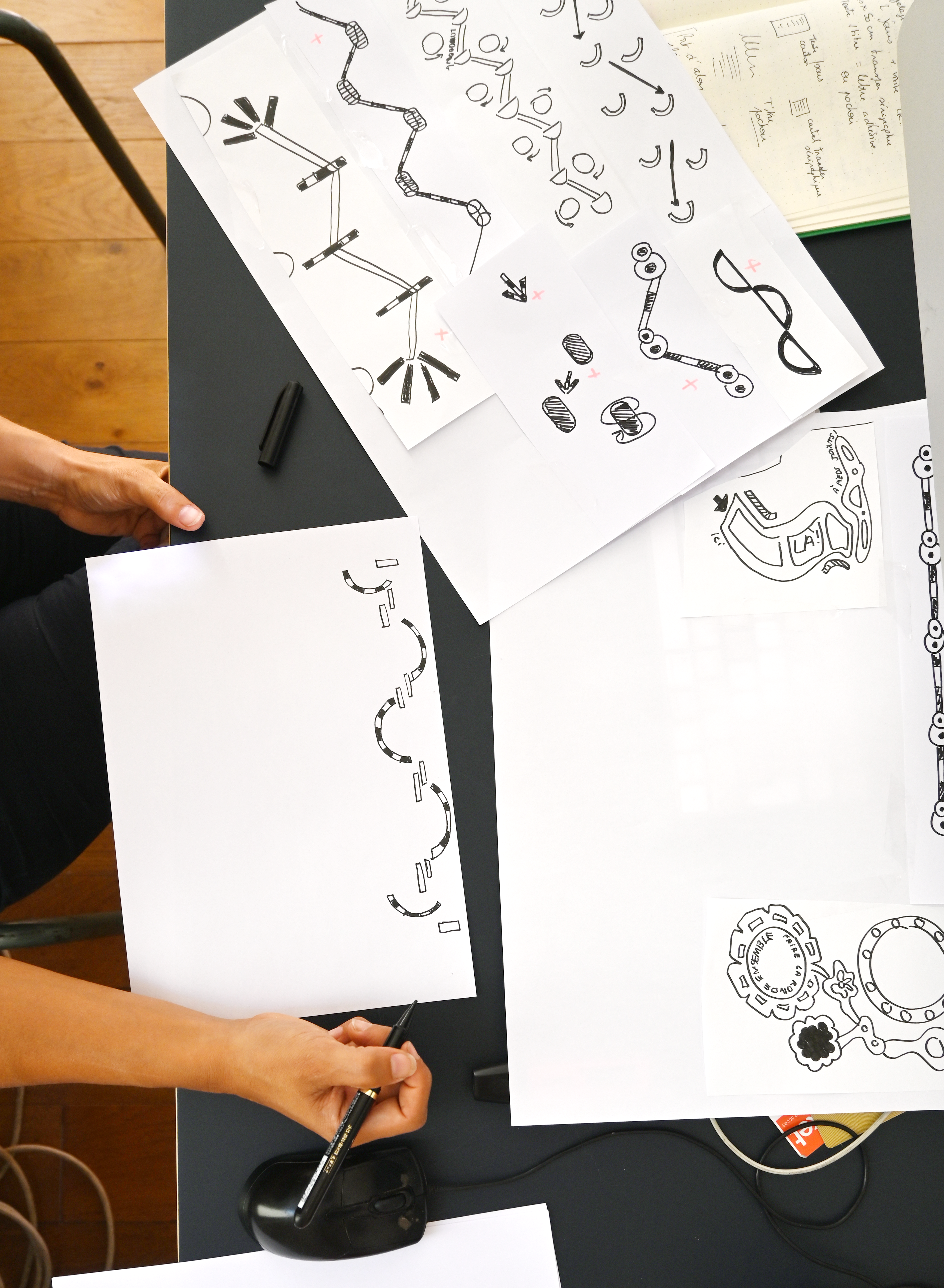 Lors de ces ateliers, les commanditaires manipulent différents objets et vocabulaires graphiques. Le but est de définir ensemble un univers visuel de référence, qui traduise une intention graphique claire.