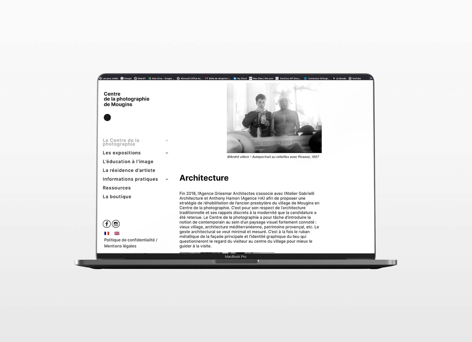 Avec la direction artistique de Michel Lepetitdidier, nous avons décliné l'identité visuelle du centre de la photographie de Mougins sur le site internet, la papeterie, les objets dérivés, la signalétique permanente et temporaire pour l'exposition