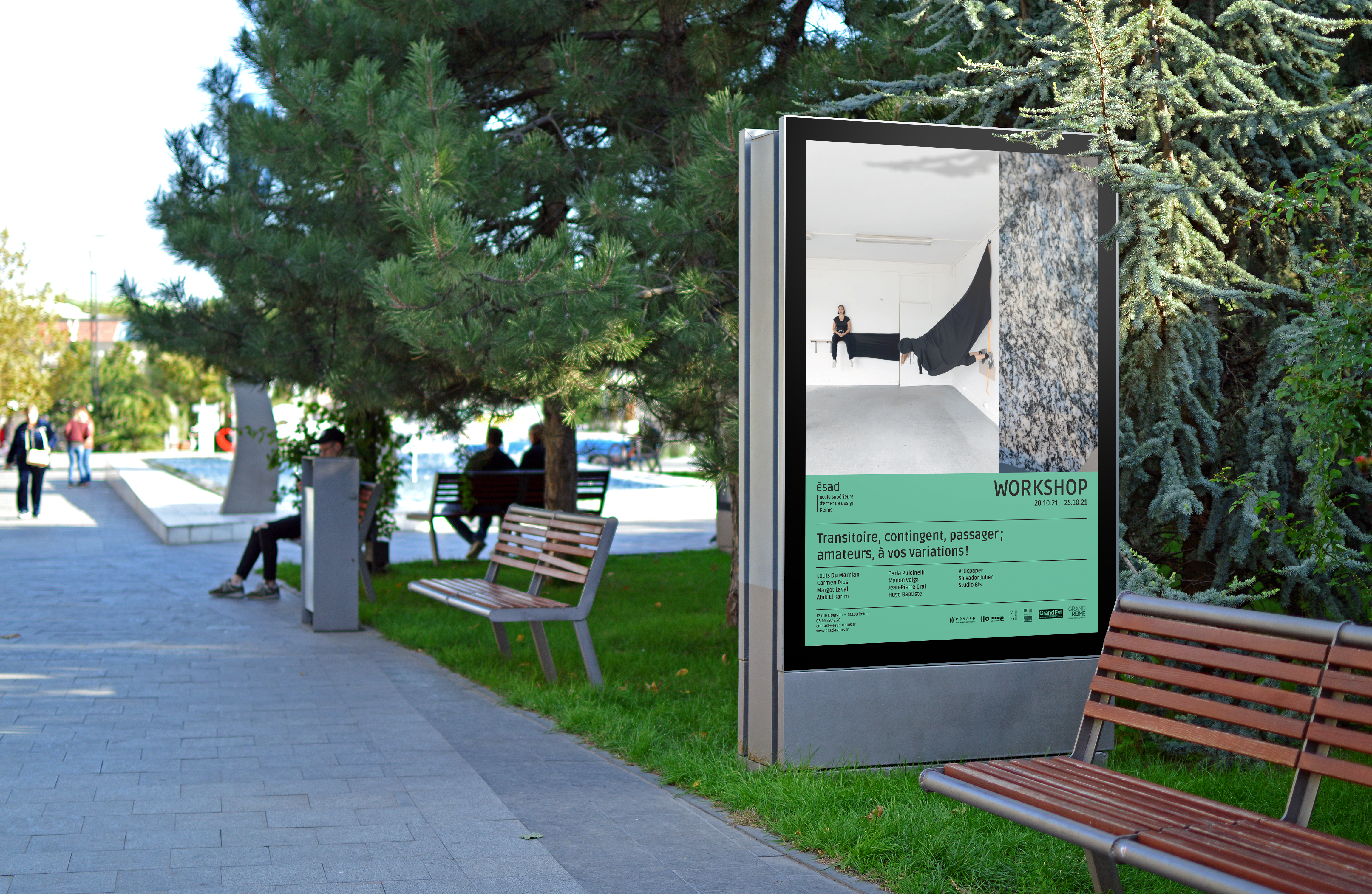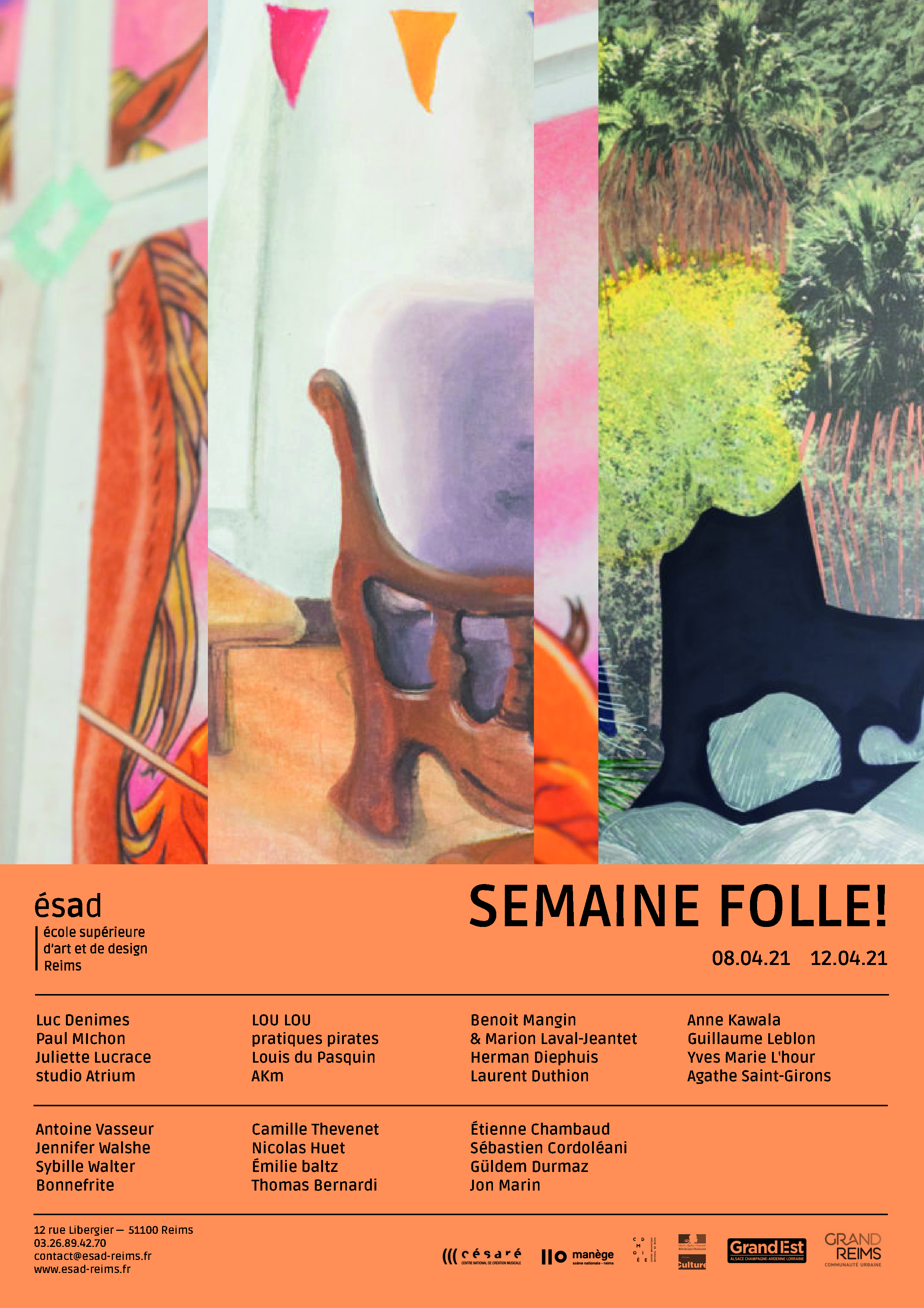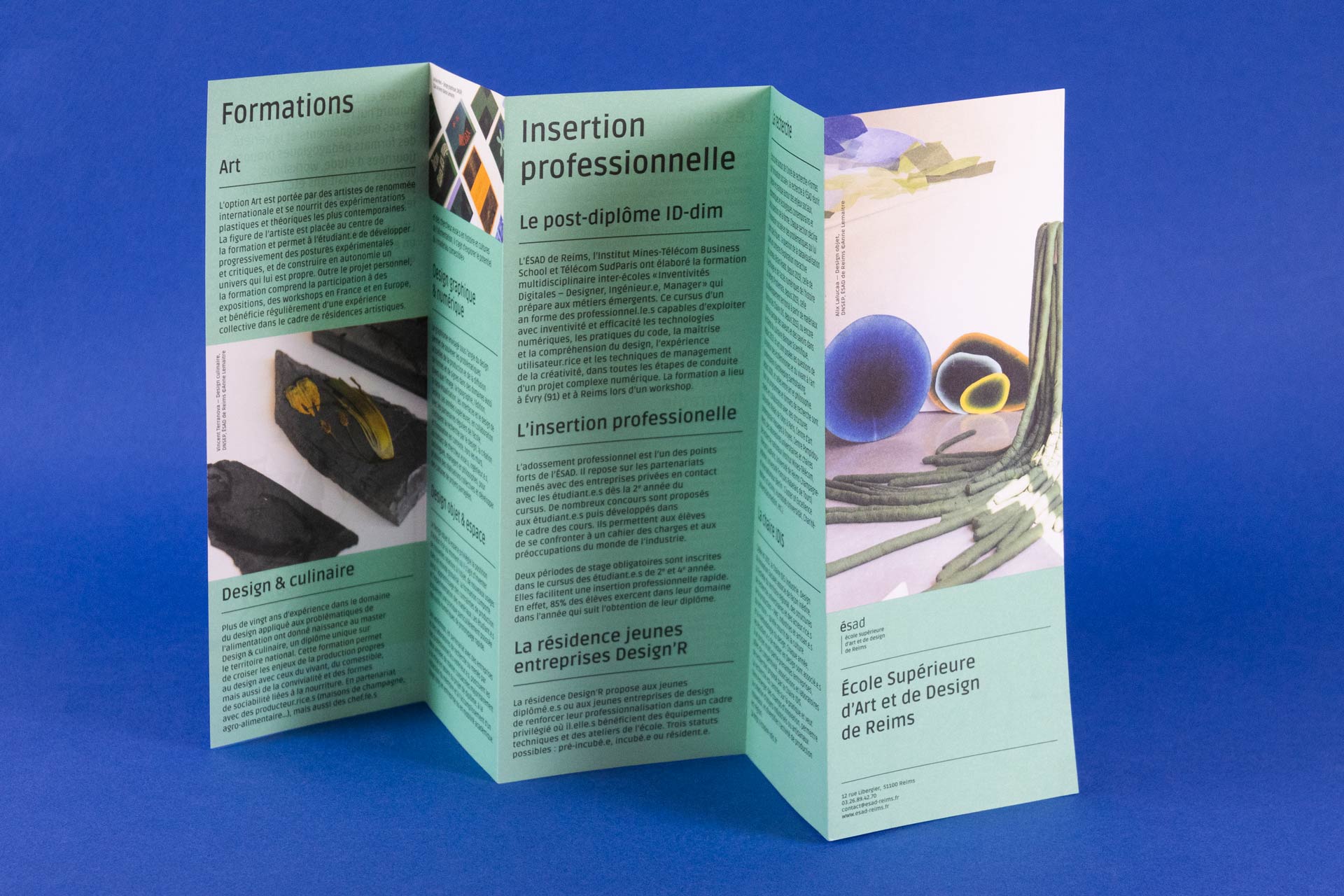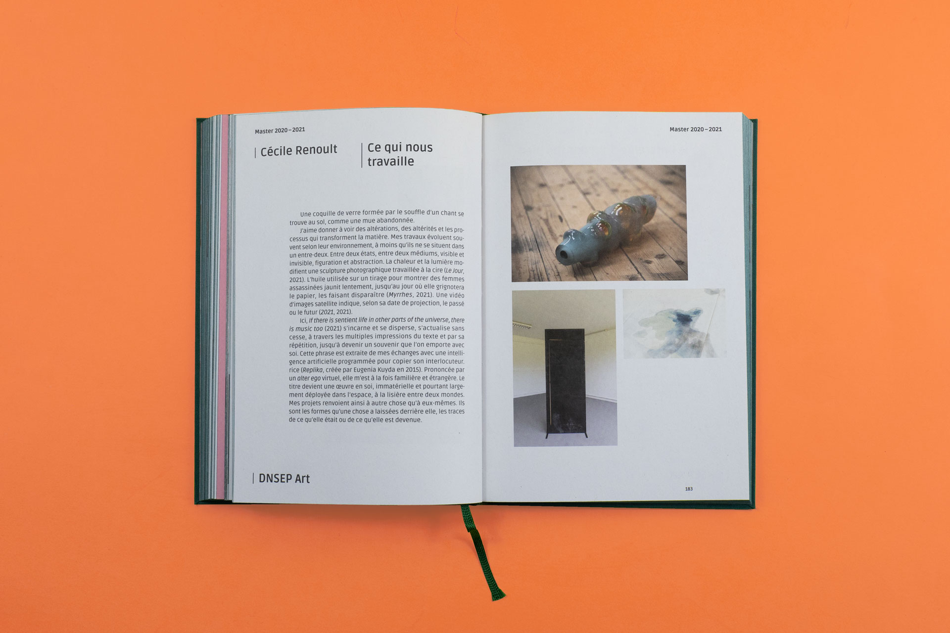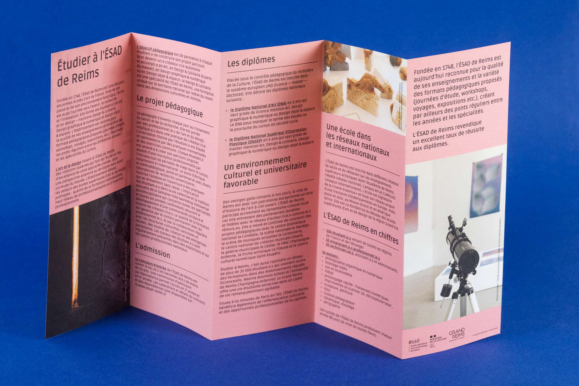 Réalisation de l'habillage de la façade du bâtiment de l'école et du catalogue des diplomé.e.s Comment devient-on créateur.rice.s ? édité aux presses du réel, commandité par Raphaël Cuir, directeur de l'École Supérieure d'Art et de Design de la ville de Reims, sous la direction d'Anaël Pigeat.