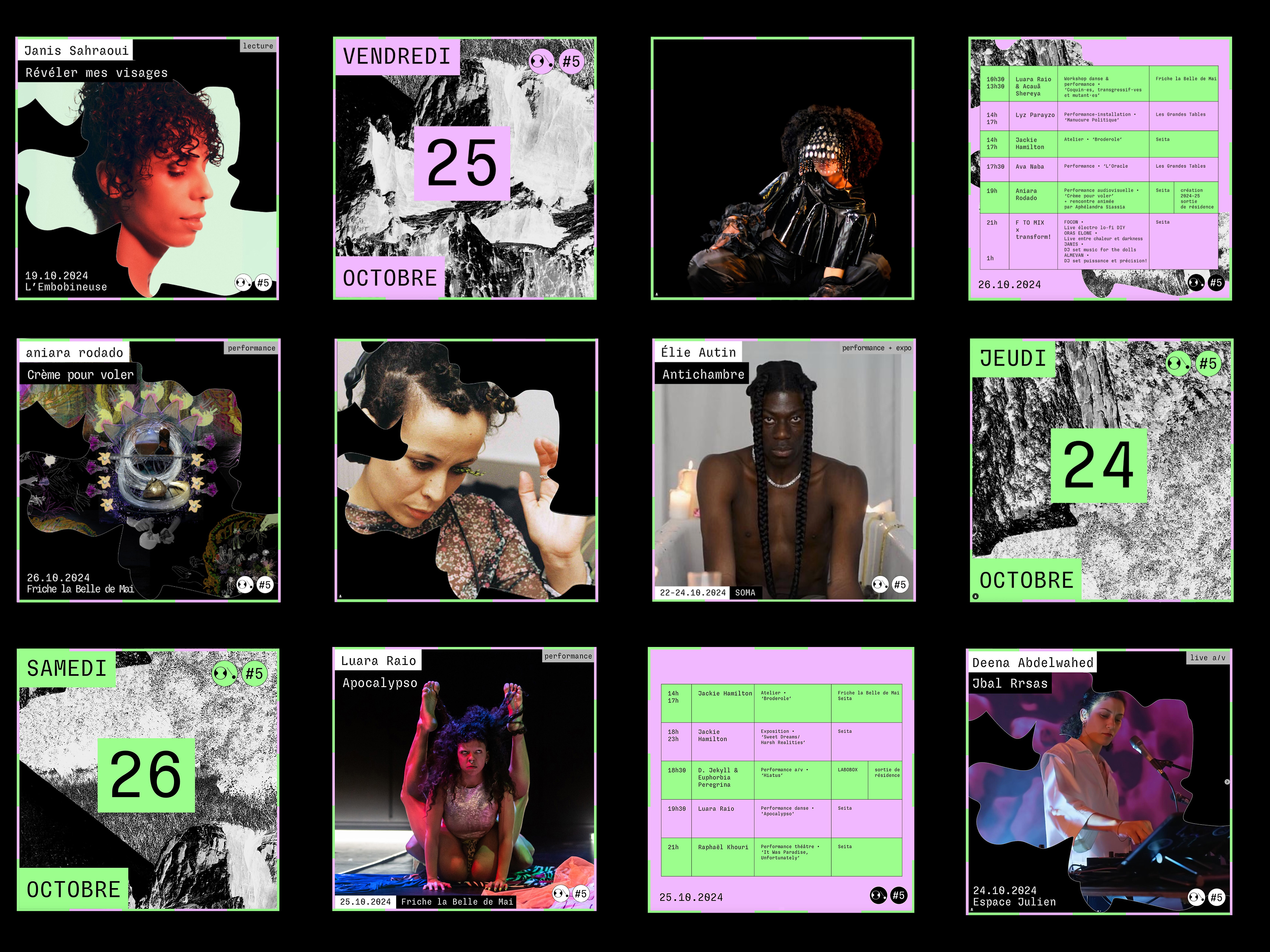 Notre mission a englobé la conception et la réalisation de l’univers graphique du festival, le design du site internet ainsi que l’ensemble des déclinaisons print et digitales : affiches, programmes, publications pour les réseaux sociaux et visuels de communication.