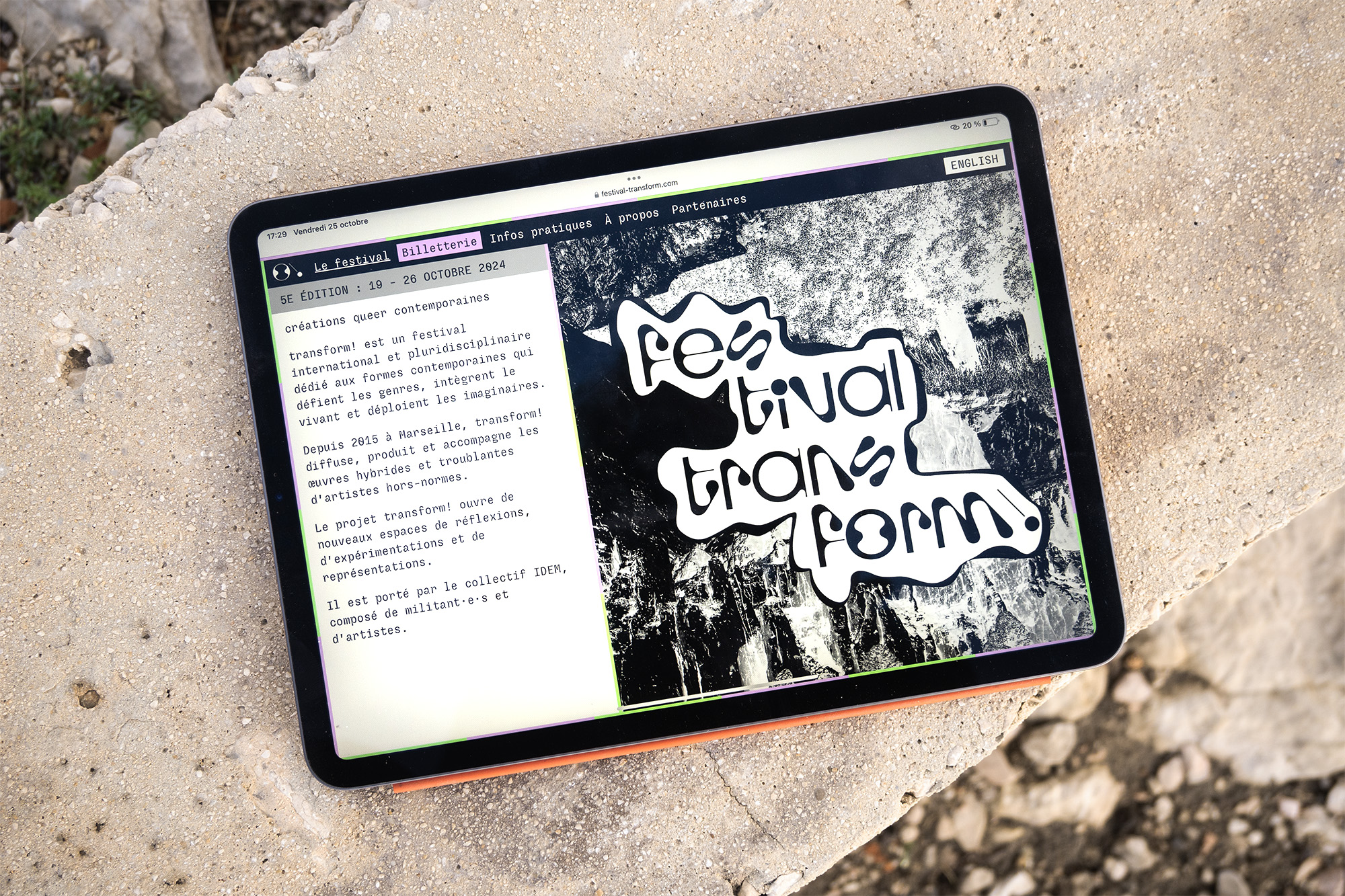 Transform! est un festival de créations queer contemporaines qui s’est tenu à Marseille du 19 au 26 octobre 2024. À cette occasion, nous avons assuré la direction artistique de l’événement en imaginant une identité visuelle complète, pensée pour incarner la richesse, la pluralité et la vitalité des expressions queer actuelles.