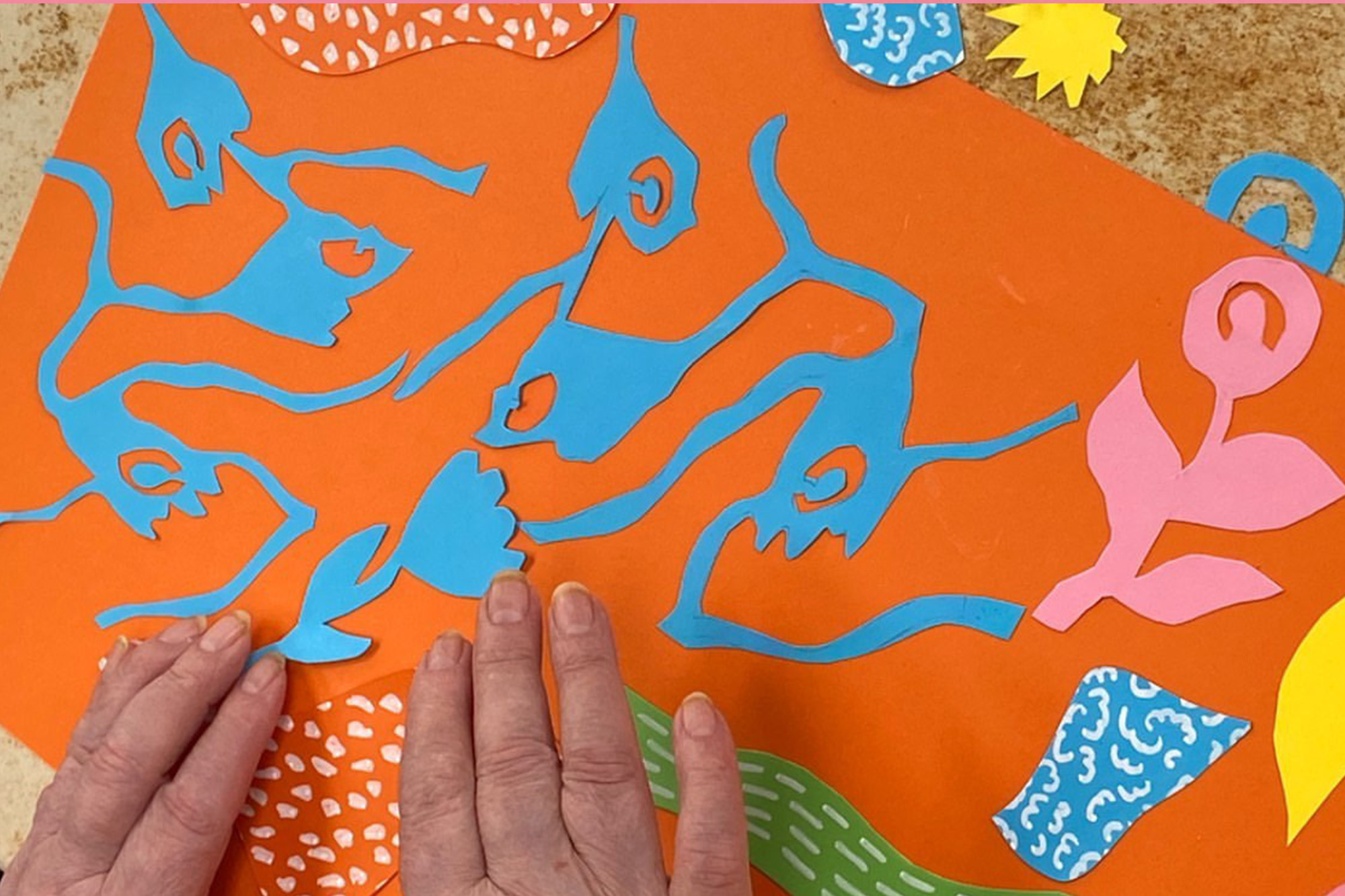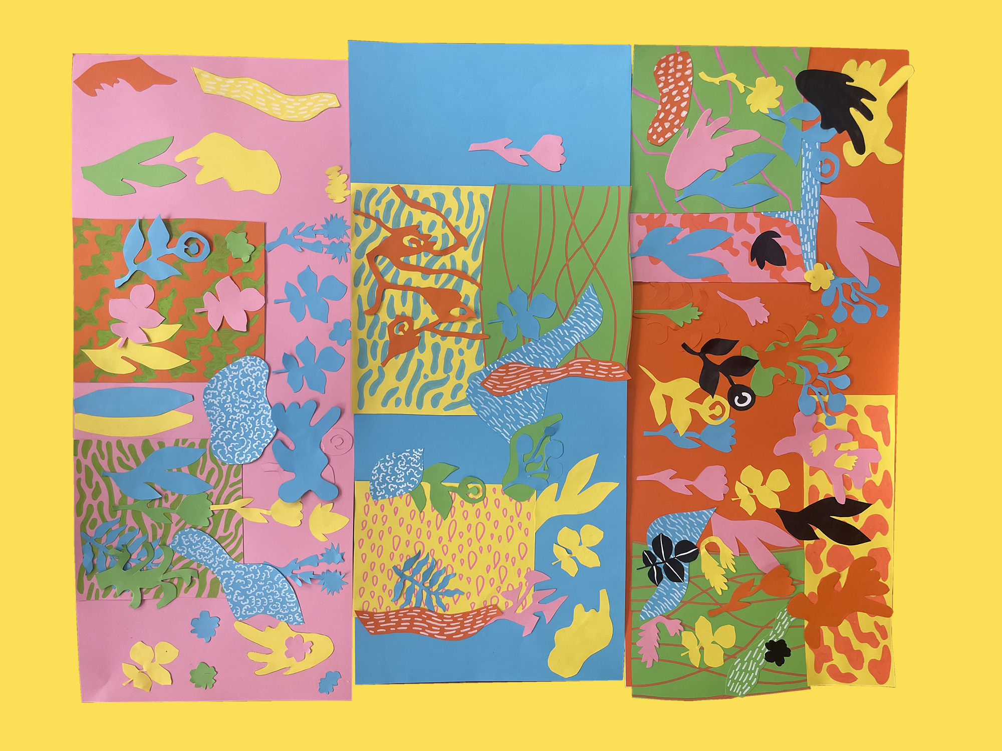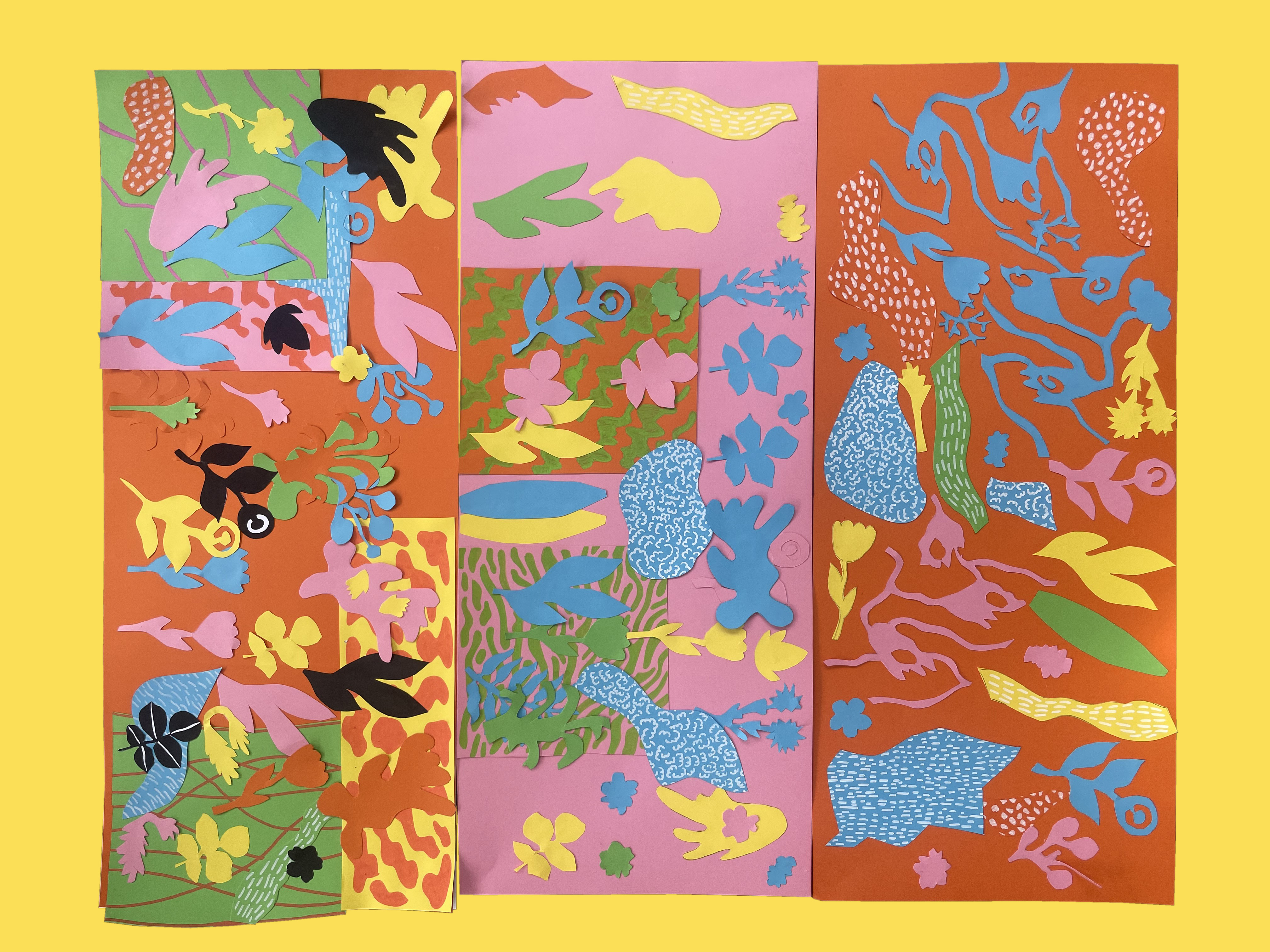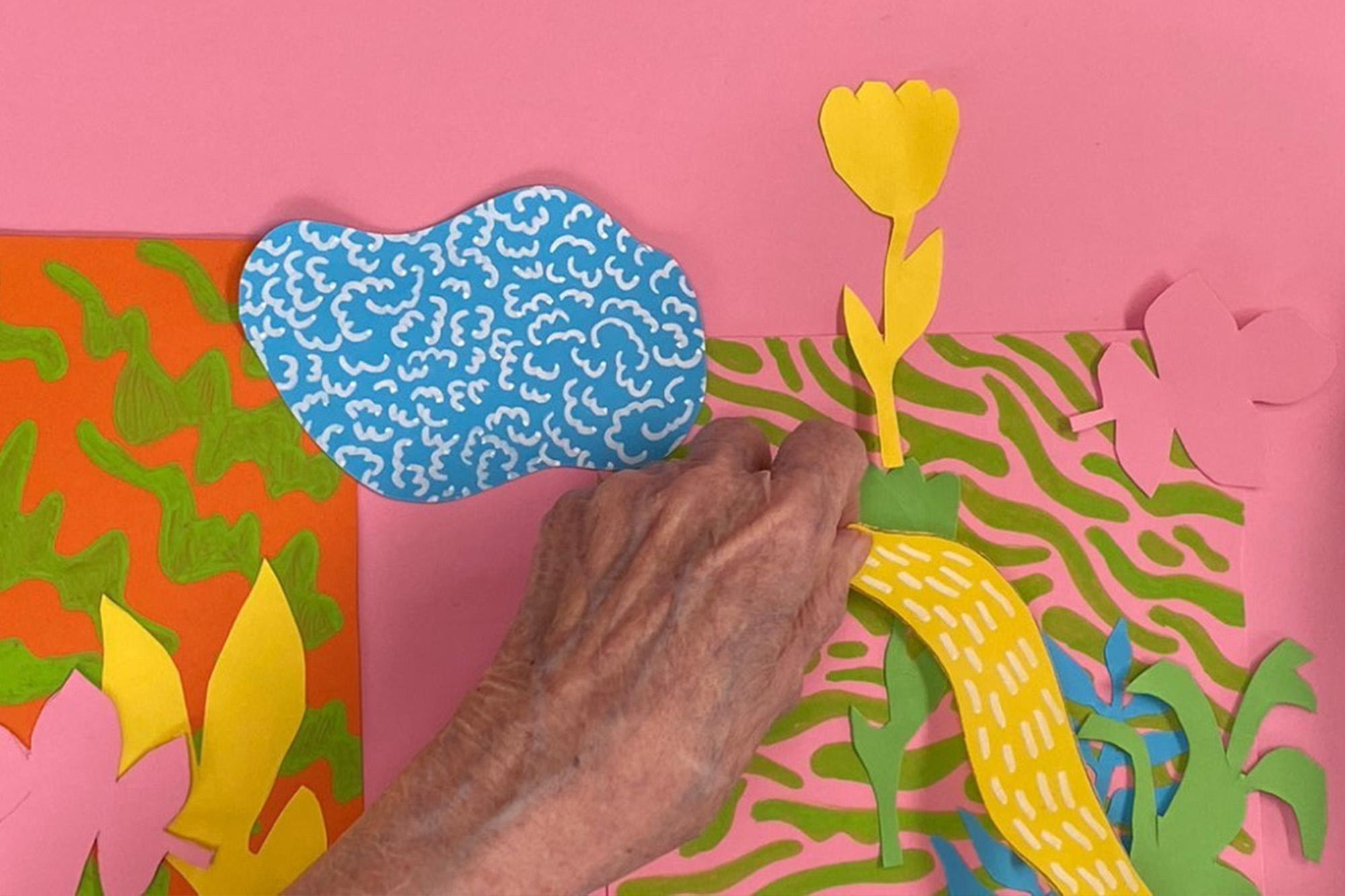 Nous avons imaginé et animé un atelier créatif autour du collage, en mettant à disposition des formes végétales et florales pré-découpées, afin que chacun·e puisse participer facilement, quel que soit son niveau d’autonomie dans le but de créer une fresque à réaliser sur le grand mur d’accueil de l’établissement.