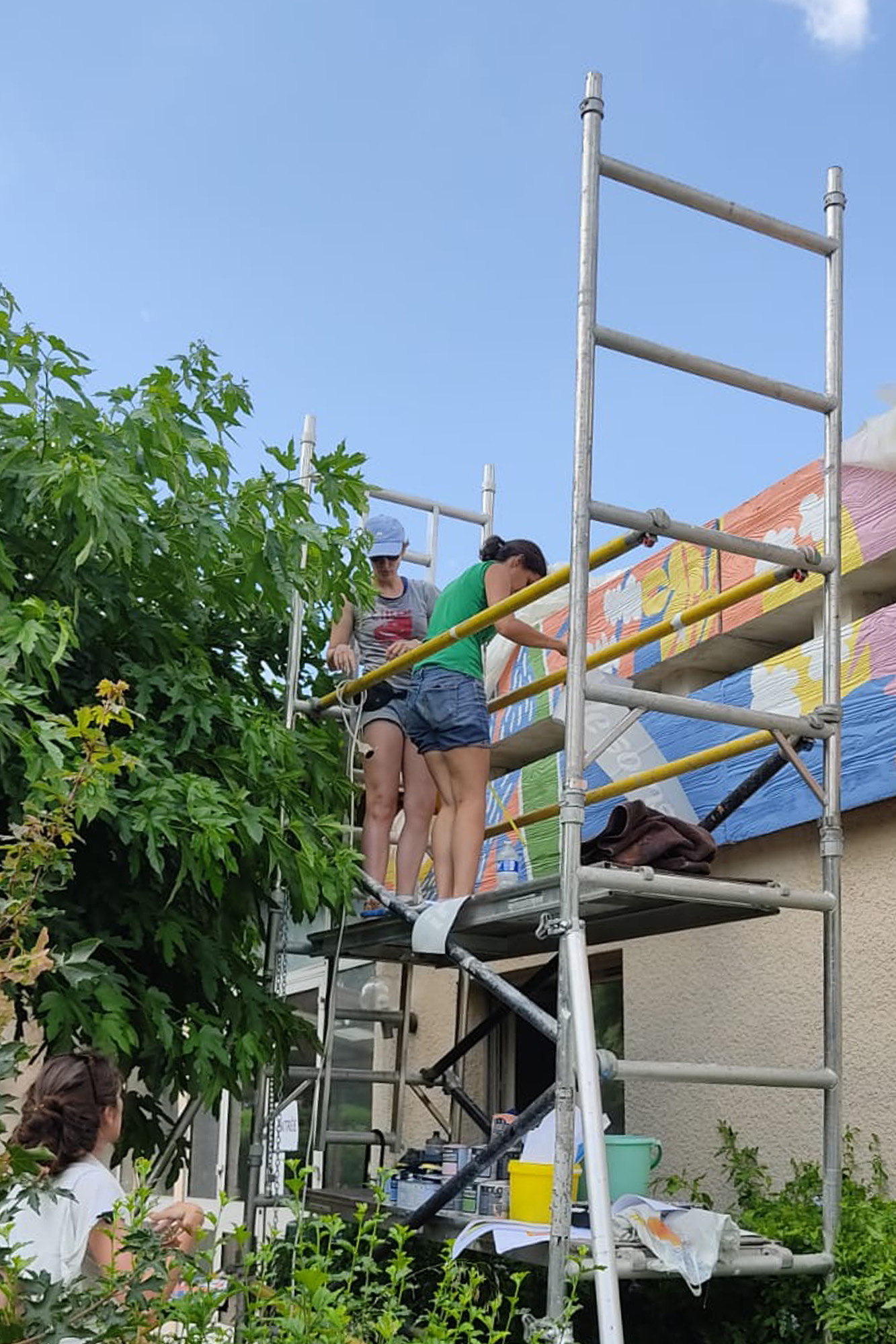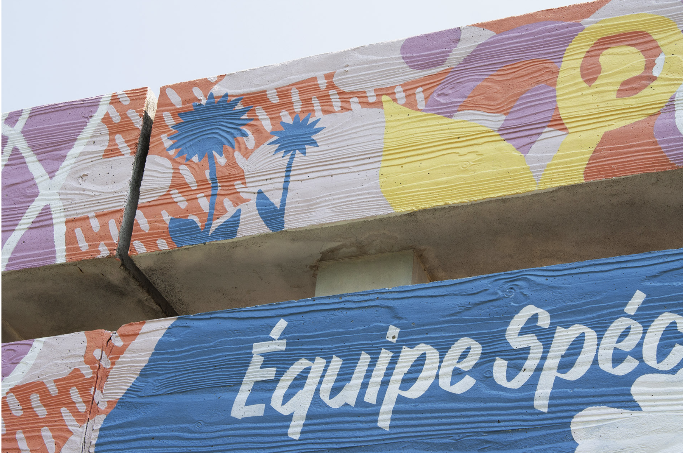 Les résident.e.s ont ensuite votés pour élire leur composition préférée que nous avons reproduit. Nous avons aussi réalisé à partir de la composition choisie une déclinaison sur le mur extérieur de bâtiment.