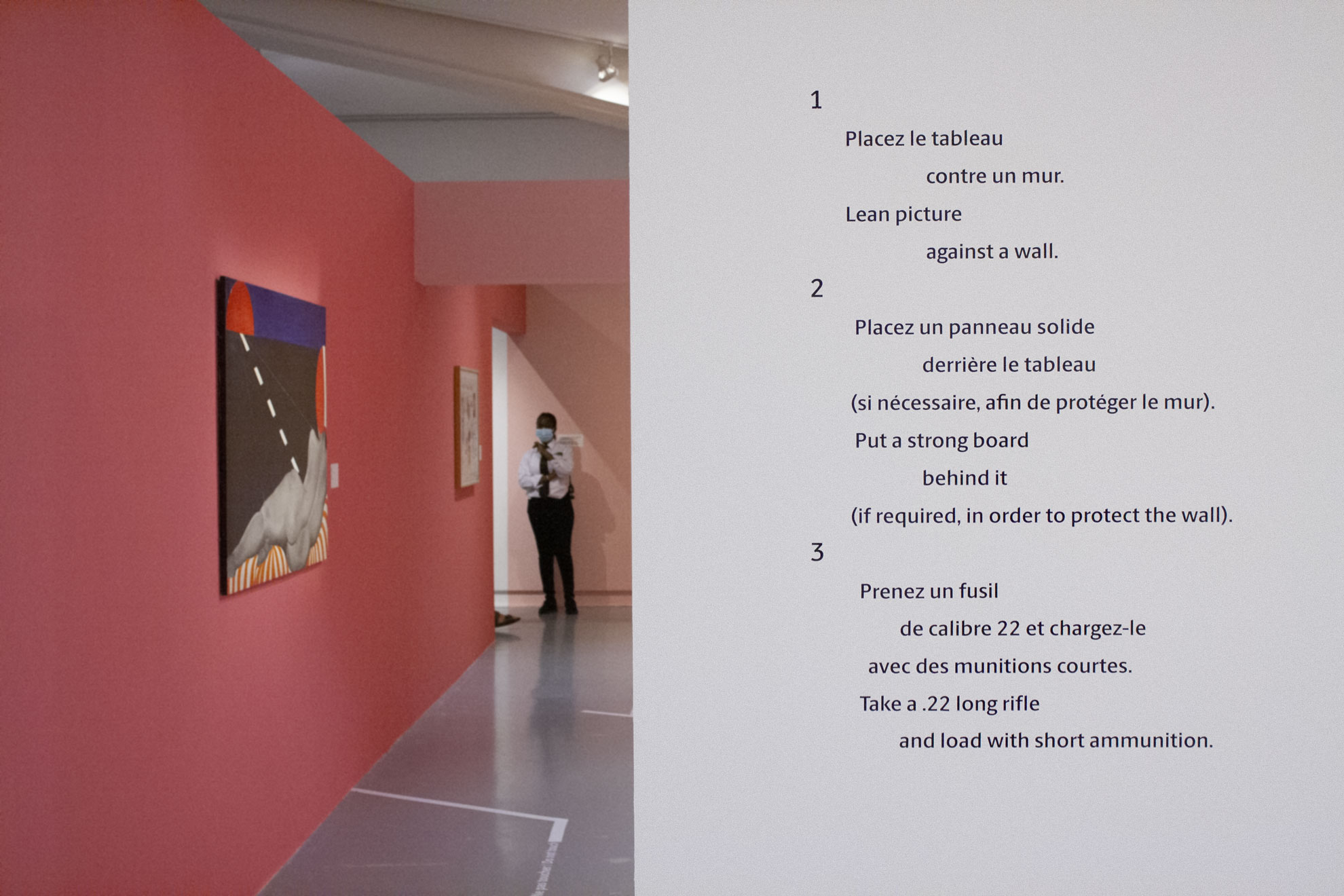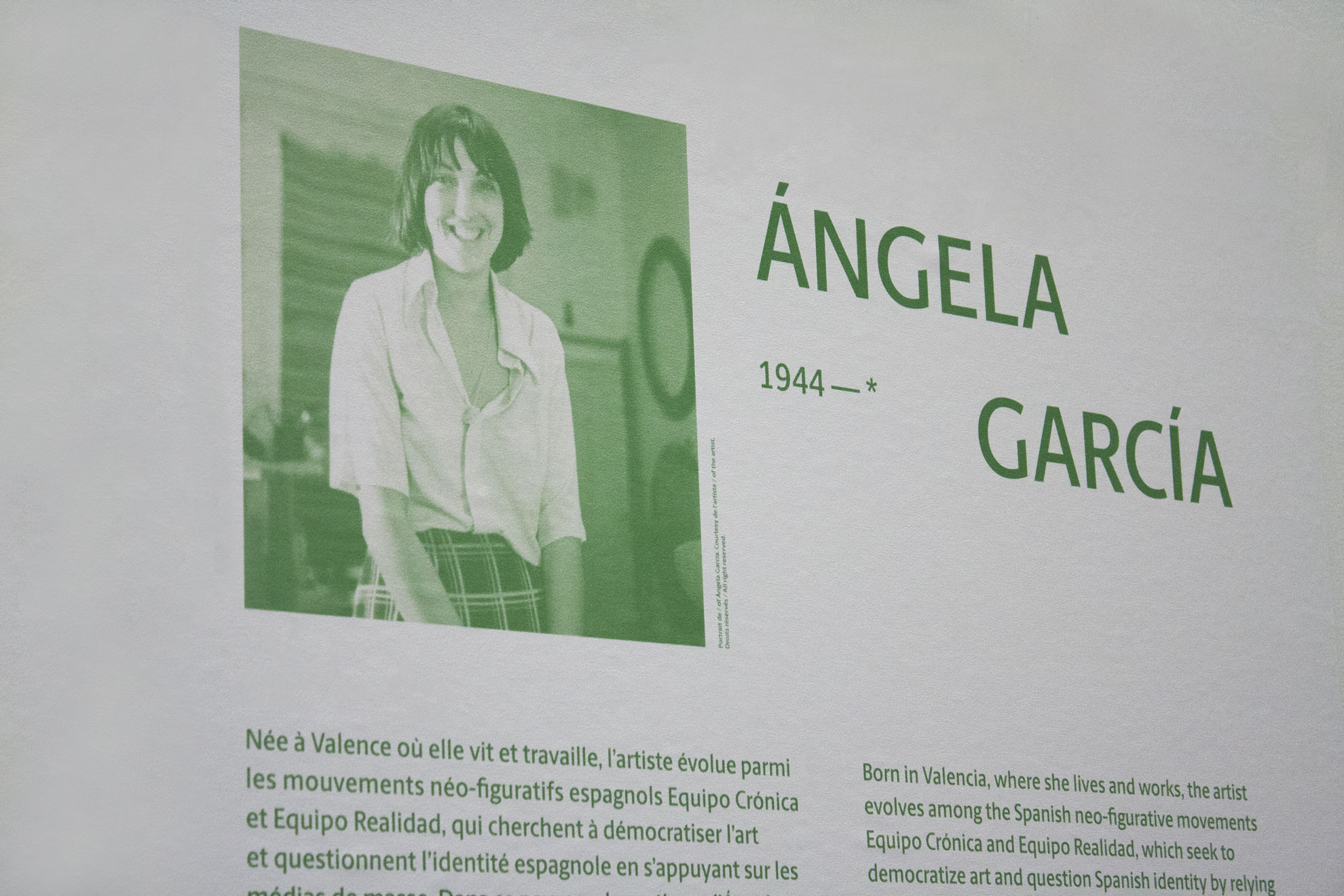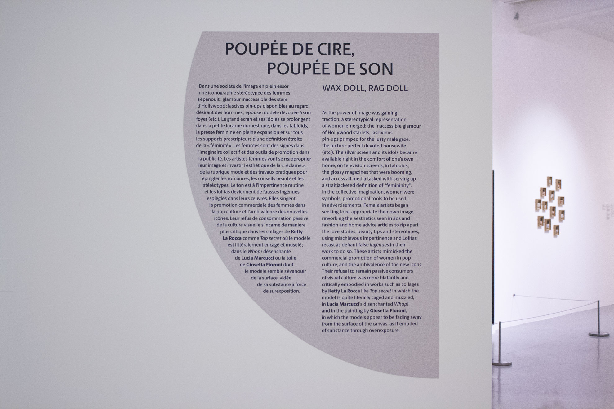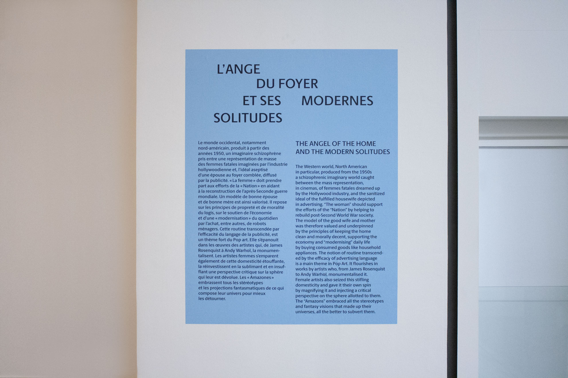 La signalétique de l’exposition s’appuie sur une typographie expressive, des couleurs franches et des jeux de composition dynamiques, tout en veillant à préserver la lisibilité et la clarté des informations. L’ensemble du dispositif – cartels, textes muraux, panneaux introductifs – a été pensé pour renforcer la présence graphique de l’exposition dans l’espace, tout en respectant le rythme et les contenus du parcours muséographique.