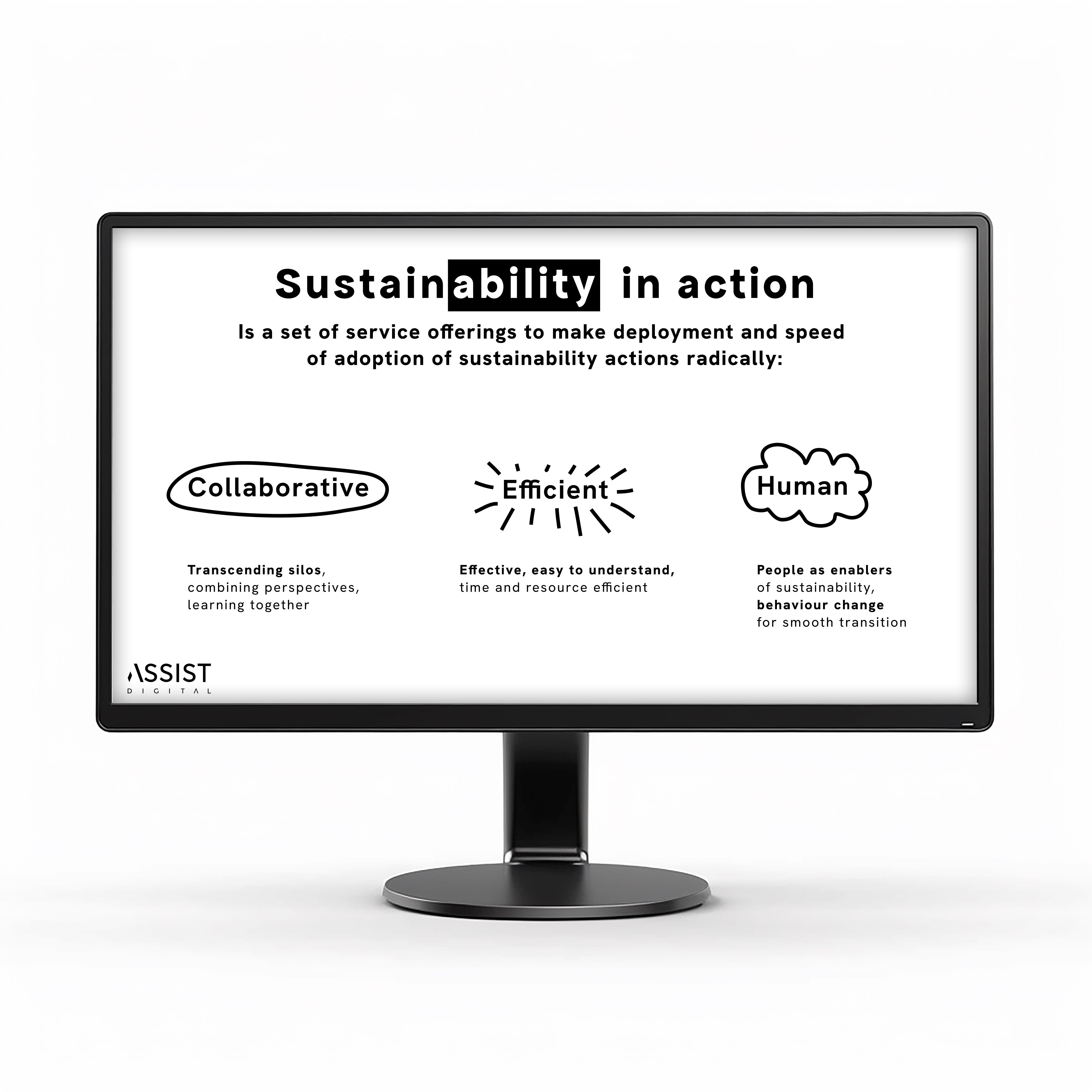 Pour l'agence Attoma/Assist Digital nous avons créé l'identité visuelle de leur offre Sustainability in Action qui propose d'accompagner des entreprises dans leur transition écologique.