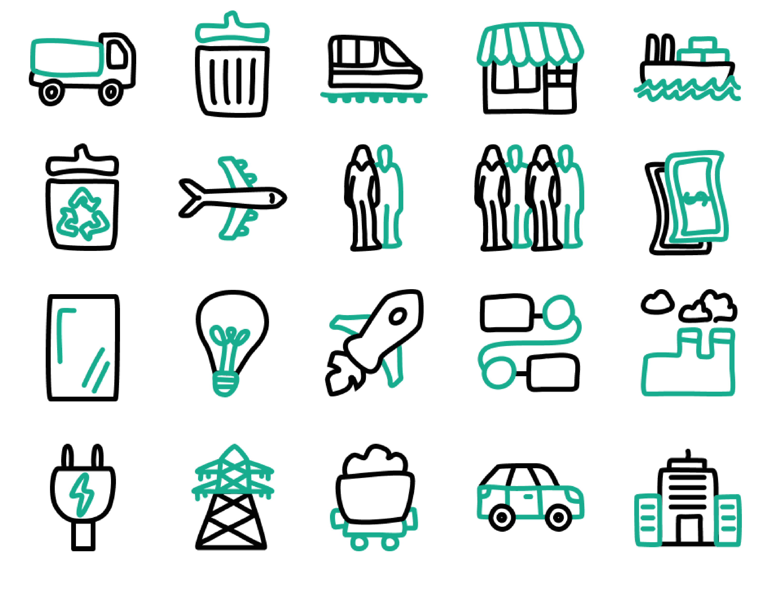 L’identité visuelle s’articule autour d’un logotype, d’un ensemble de pictogrammes et de gabarits de présentation déclinables pour le print et le web. Nous avons conçu une famille de signes et de pictogrammes au trait volontairement intuitif, parfois légèrement imparfait, afin d’humaniser les formes et de leur donner un caractère plus amical et joyeux.