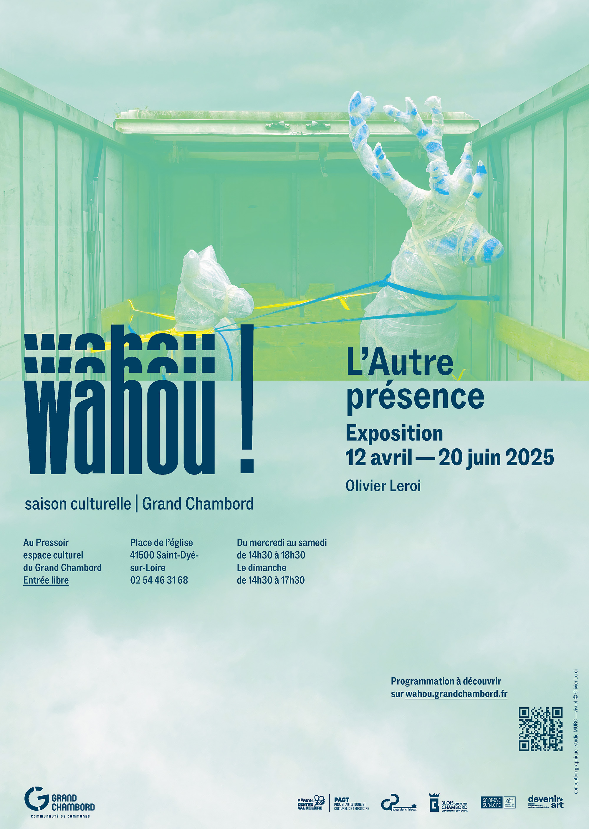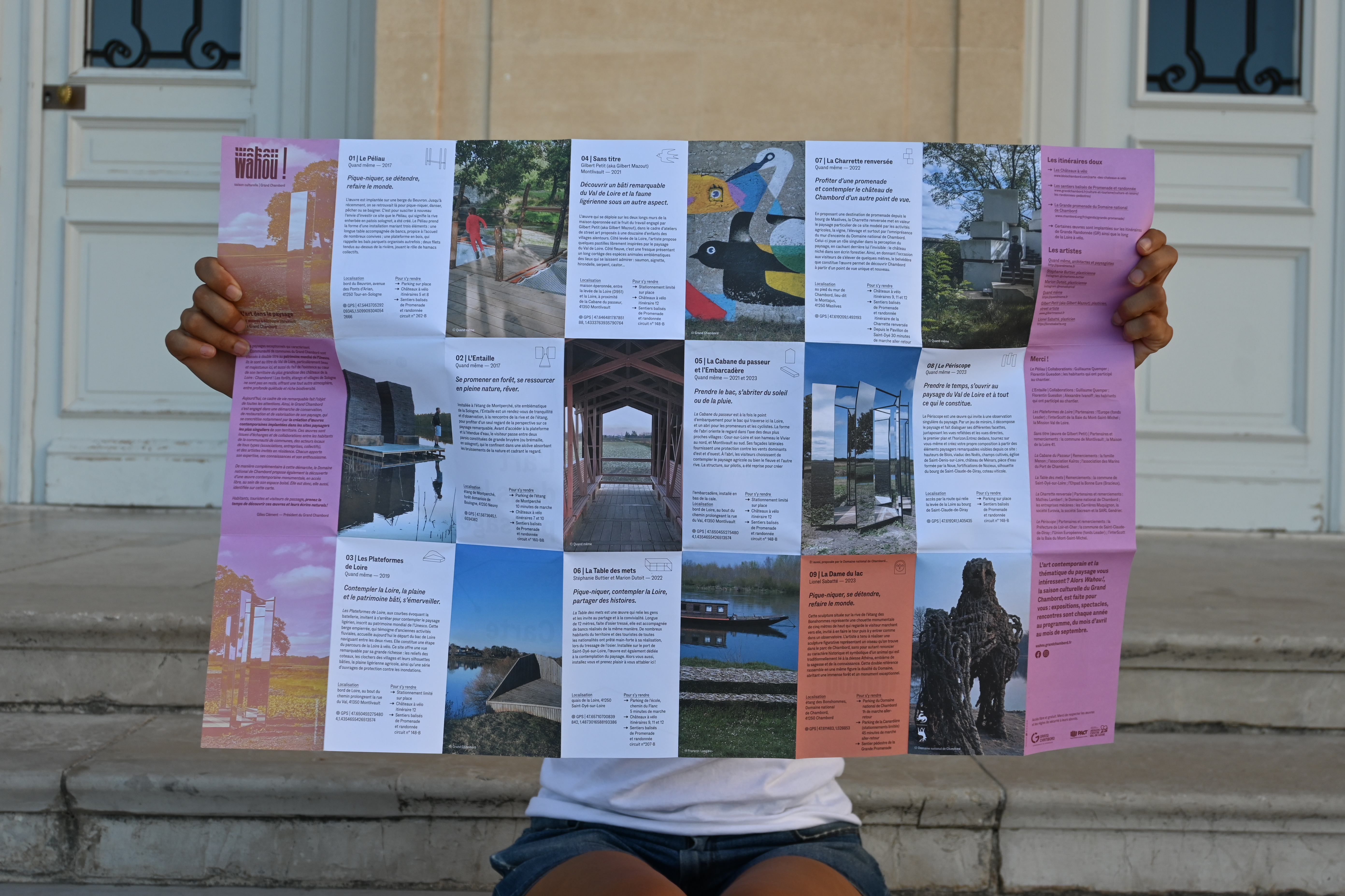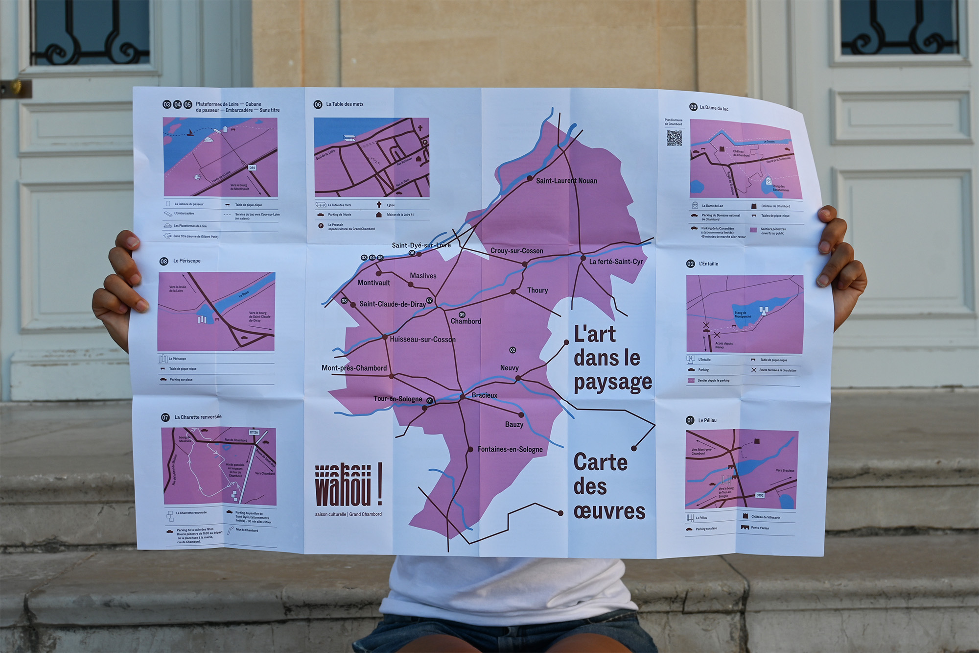 Depuis 2023, le studio accompagne la Communauté de communes du Grand Chambord dans la création et le déploiement de la saison culturelle Wahou !, un festival d’art contemporain dédié au paysage. Pensé comme un parcours artistique ancré dans le territoire, Wahou ! met en dialogue la création contemporaine, l’environnement naturel et le patrimoine exceptionnel du Grand Chambord.
