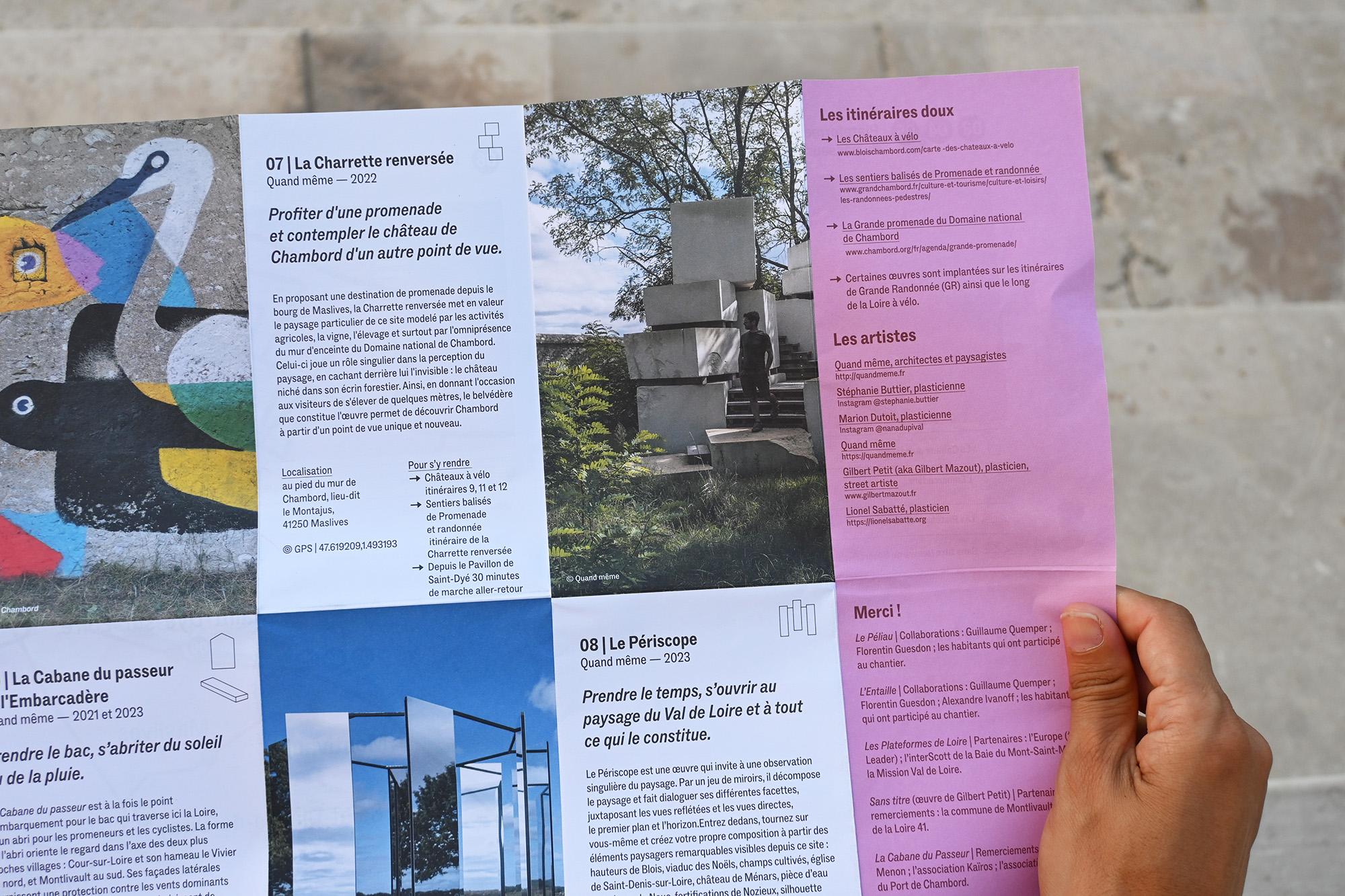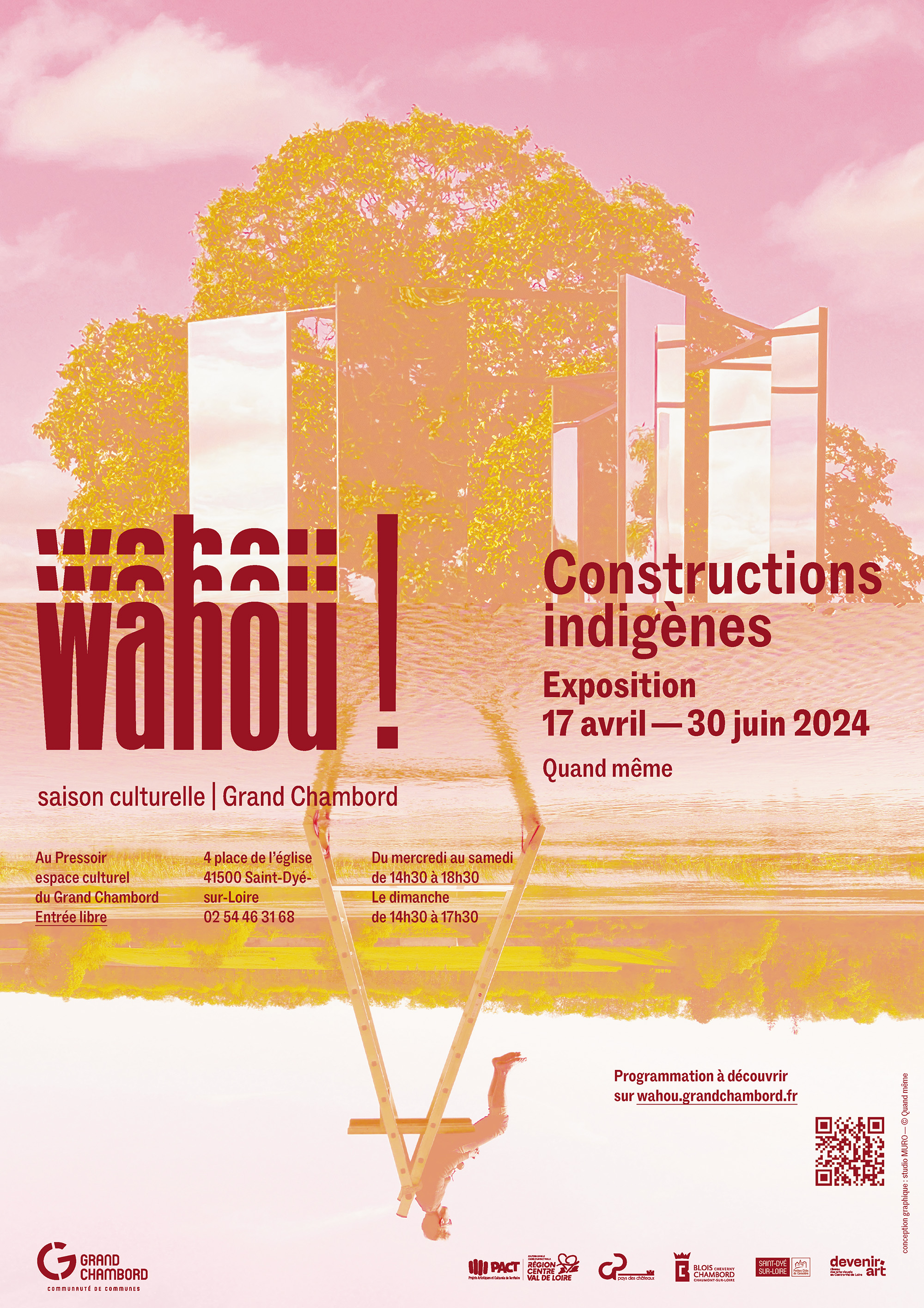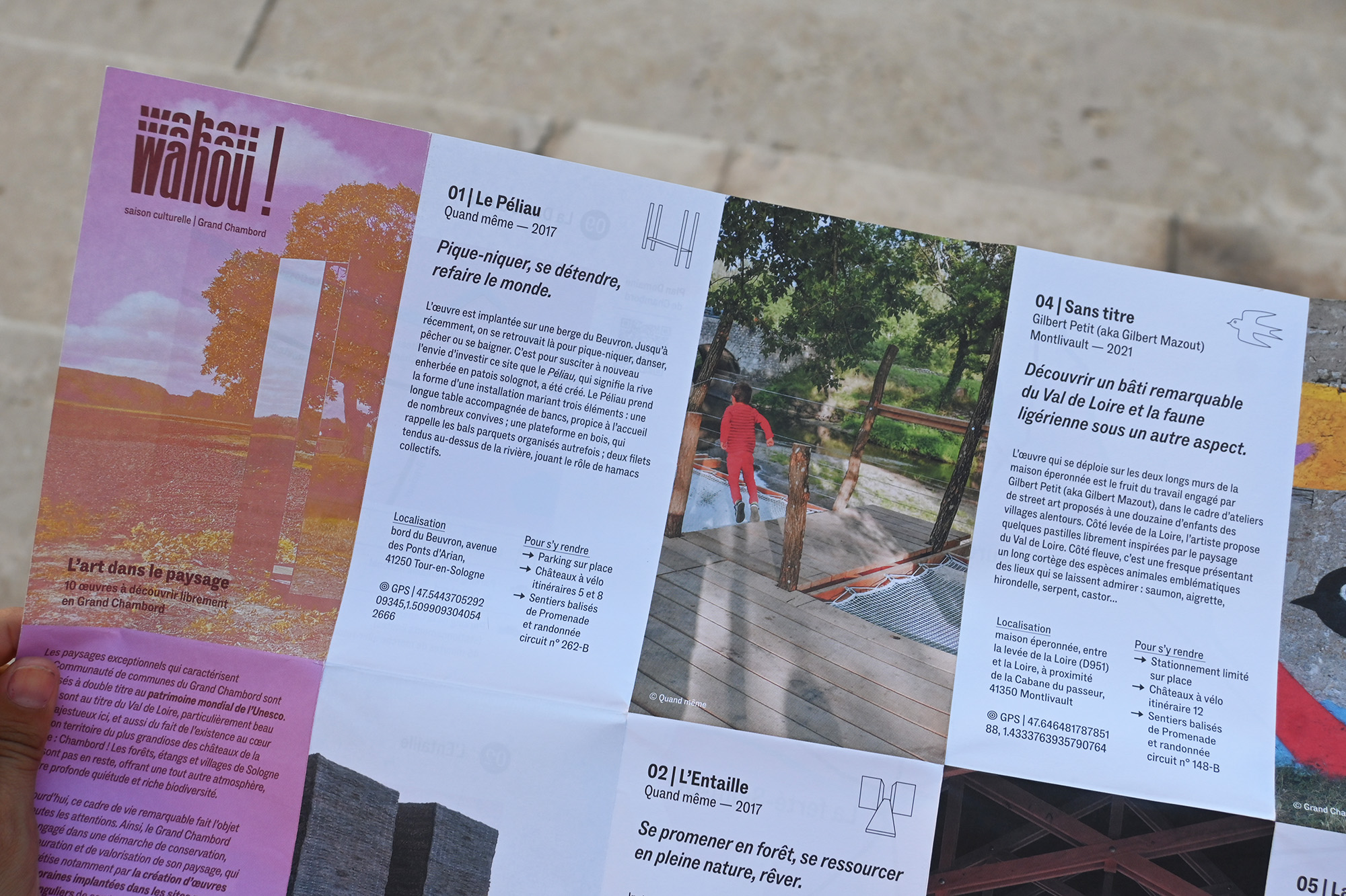 Depuis 2023, le studio accompagne la Communauté de communes du Grand Chambord dans la création et le déploiement de la saison culturelle Wahou !, un festival d’art contemporain dédié au paysage. Pensé comme un parcours artistique ancré dans le territoire, Wahou ! met en dialogue la création contemporaine, l’environnement naturel et le patrimoine exceptionnel du Grand Chambord.