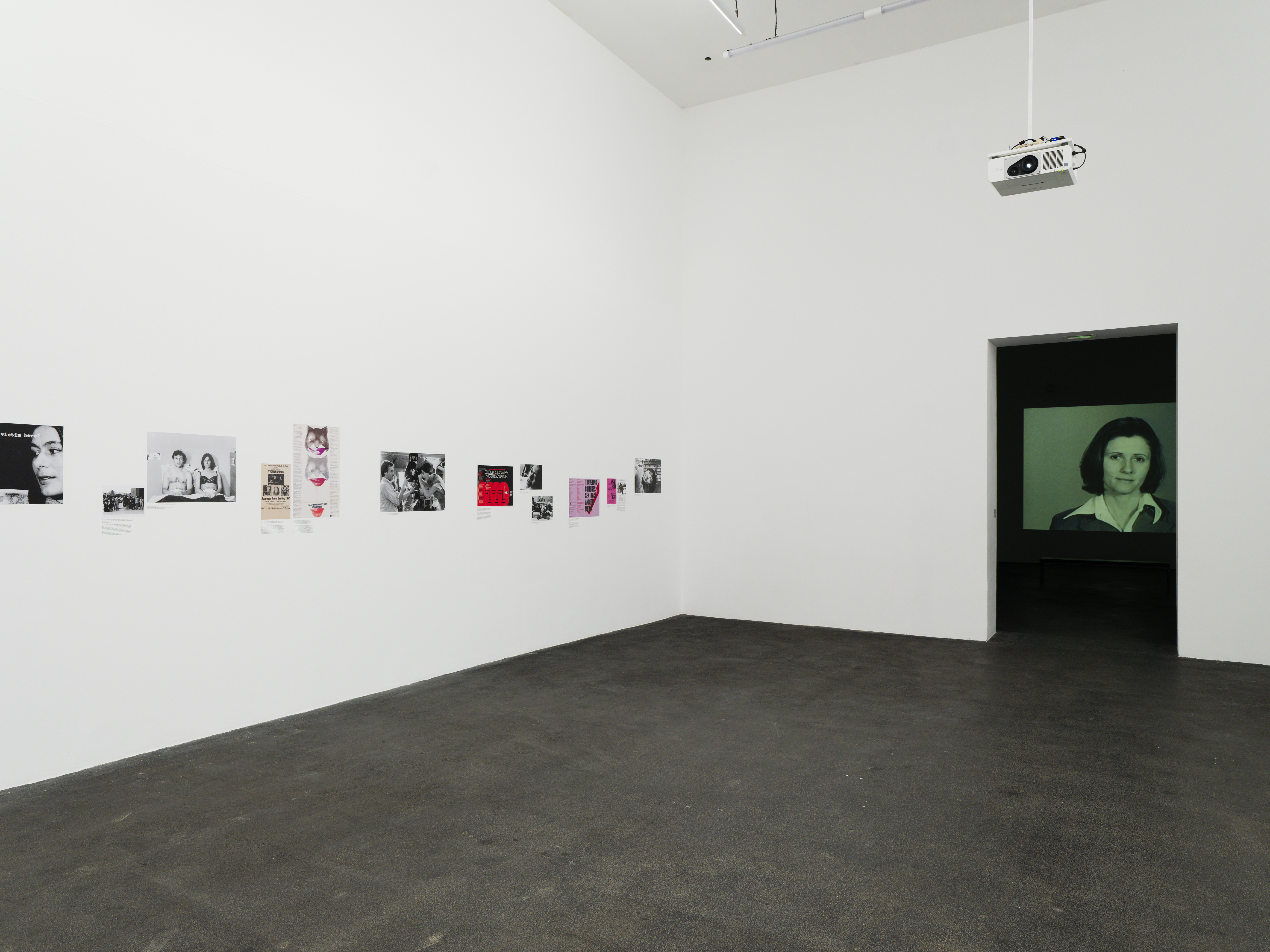 Vue de l'exposition Yvonne Rainer: A Reader, 2025, exposition collective au Crac Occitanie, Sète. Photo : Aurélien Mole.